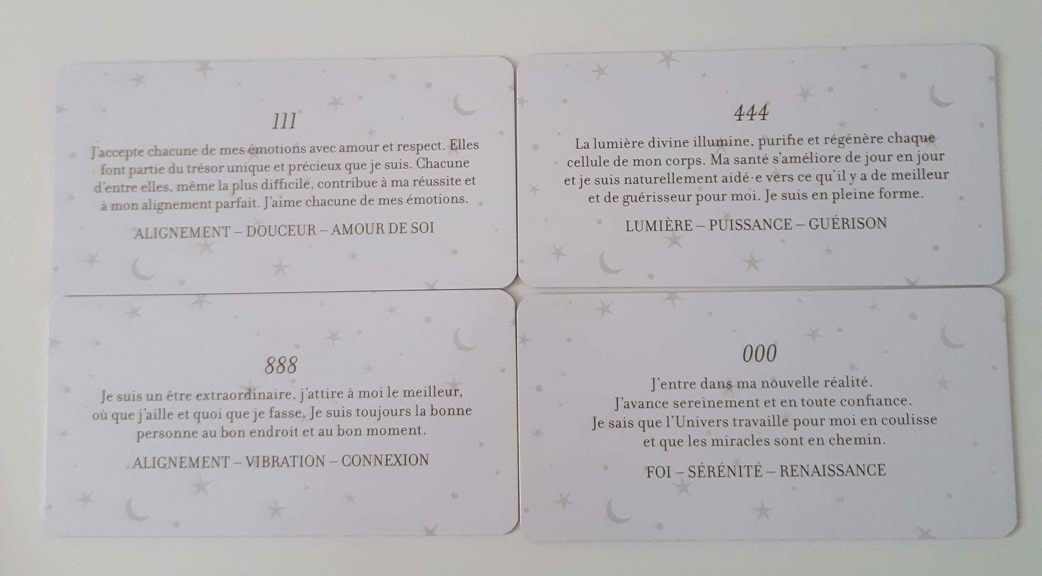 888 : je suis un être extraordinaire, j'attire à moi le meilleur, où que j'aille et quoi que je fasse. Je suis toujours la bonne personne au bon endroit et au bon moment.
