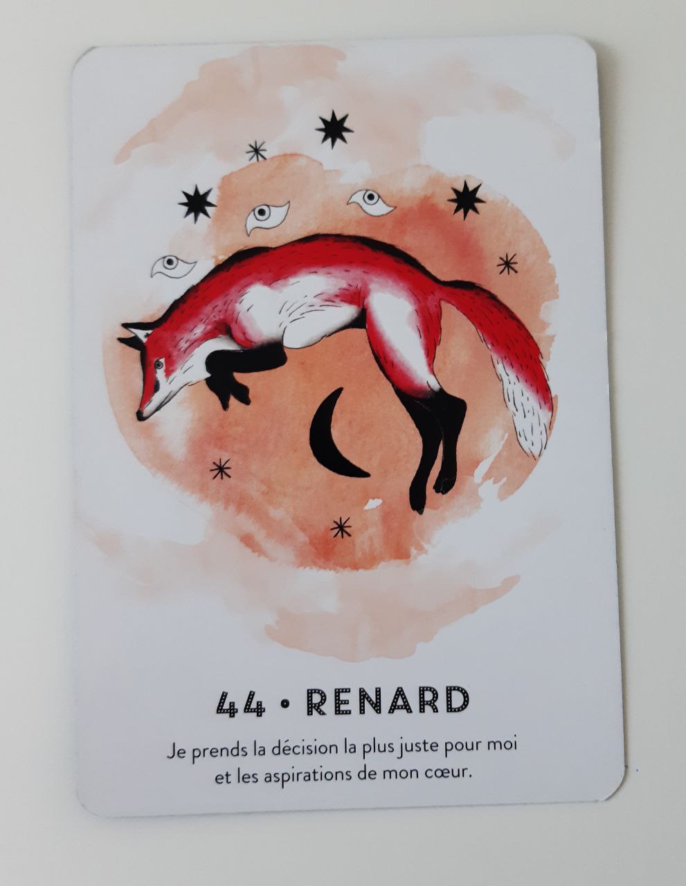 Le Renard t'invite à orienter ton intelligence vers ton cœur, afin de capter la subtilité des expériences que tu traverses. Il t'aide à prendre une décision, à peser le pour et le contre, pour oser saisir une opportunité qui se présente. Il est également le compagnon idéal lors des déménagements, voyages ou changements dans ton habitat. Avec lui, la vie est un jeu et tu peux oser sortir de ta zone de confort pour accepter certains risques. Il te soutient pour que tu puisses rester aligné(e) avec tes valeurs, développer ton indépendance et te positionner avec diplomatie. C'est le moment idéal pour mettre en place des actions concrètes pour soutenir ton évolution.