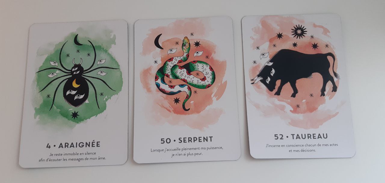 L'araignée t'invite à observer toutes les facettes de ta personnalité, dans le silence de ton recueillement intérieur. Je te questionne sur ta capacité à être dans l'immobilité, dans l'observation de ce qui se manifeste autour de toi. Je suis la maîtresse des ombres, afin que tu n'aies plus peur des tiennes. Je te conseille de te relier à ton intuition, de méditer, de plonger dans ta profonde féminité, afin que la Source Divine puisse y déverser sa matière fertile. Cela te permettra ainsi de mettre en œuvre ta créativité, construire avec soin et harmonie ce dont tu as besoin pour nourrir les besoins de ton cœur. Je te demande également d'être cohérent(e), dans ta façon de penser, d'agir et de te mettre en mouvement au quotidien.