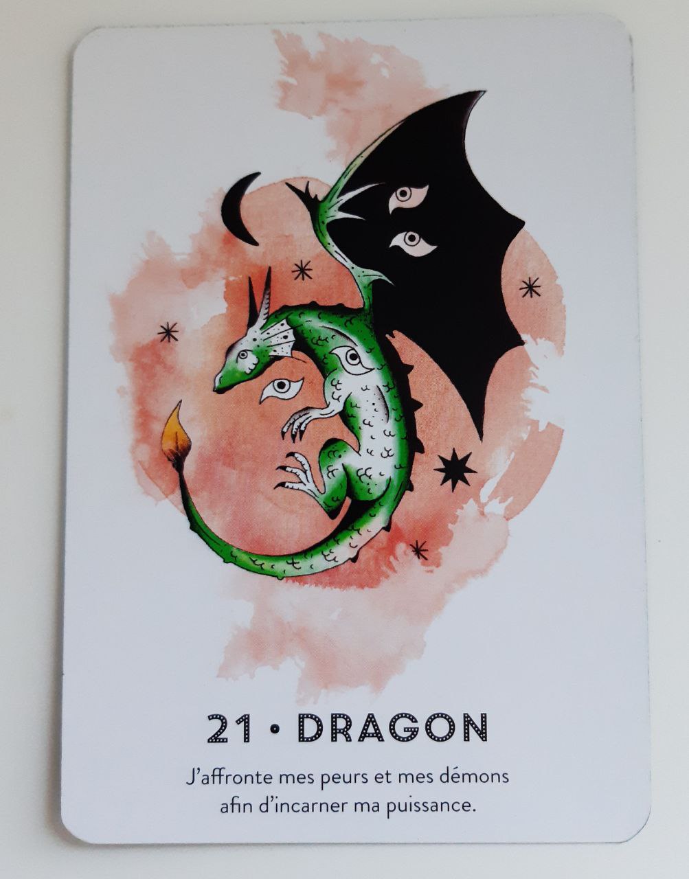Le dragon t'invite à affronter tes démons intérieurs, ceux que tu redoutes le plus, qui ne sont pourtant que le reflet de tes peurs, empêchant la beauté de ton cœur de s'exprimer. J'accompagne les guerriers de lumière comme toi, afin que tu puisses découvrir ton infini potentiel et le courage que tu peux déployer.