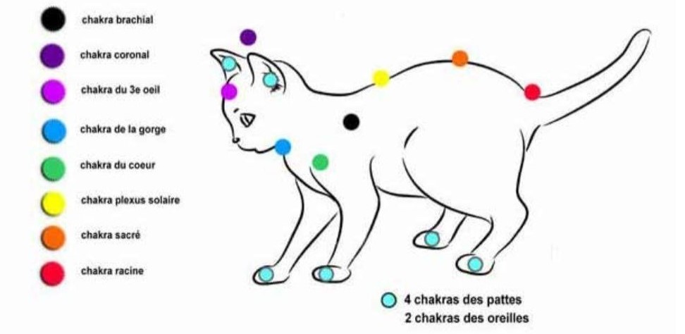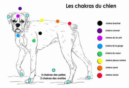 Les animaux ont en commun avec les humains les 7 chakras principaux (Couronne, Troisième Œil, Gorge, Cœur, Plexus Solaire, Sacré et Racine). Ils en ont aussi un huitième, qui n’est propre qu’à eux, et qui s’appelle le Chakra Brachial. Ce chakra a été découvert par Margrit Coates, Guérisseuse Animalière.